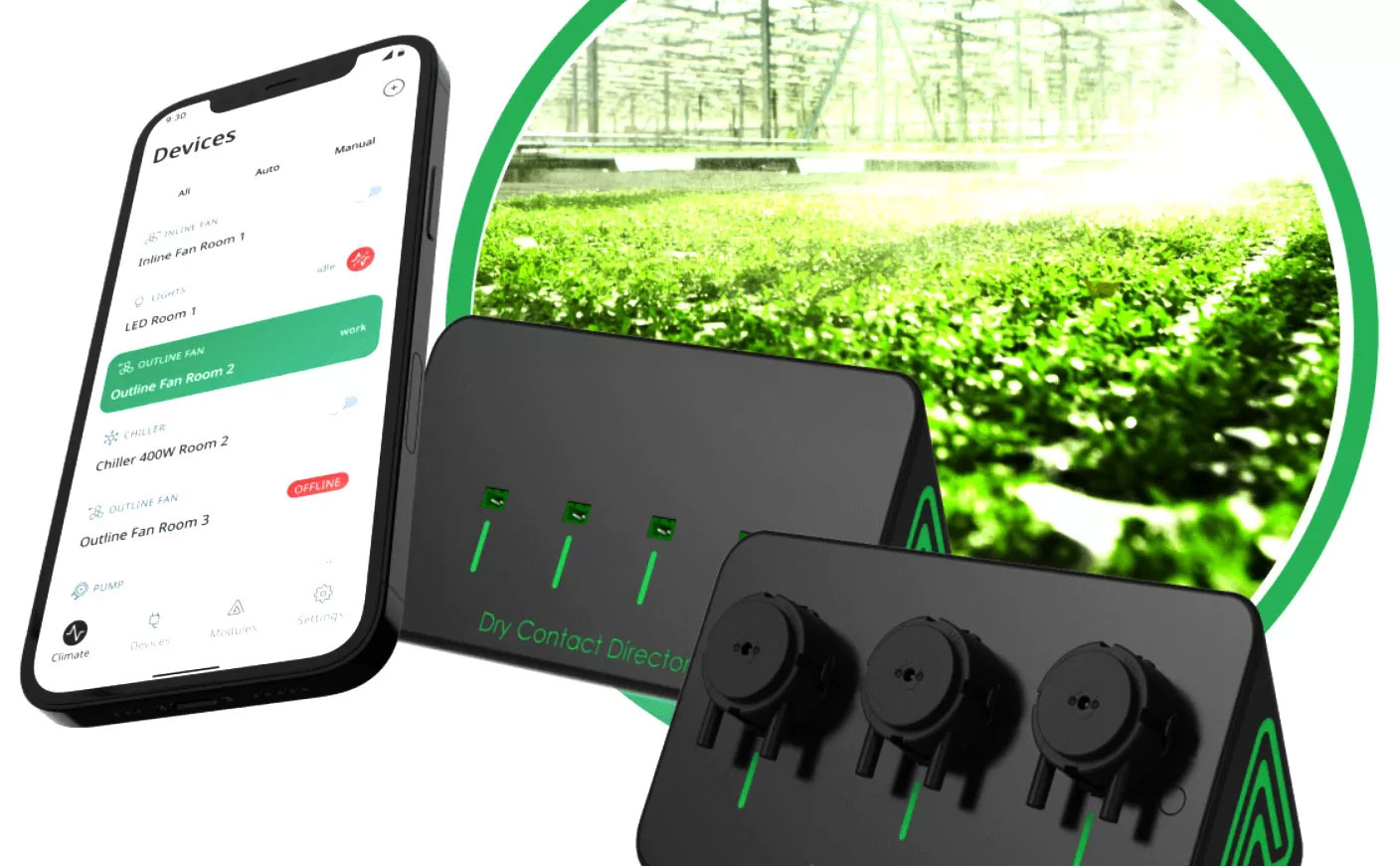 GrowDirector 3 PRO is a fully scalable, customizable, intelligent, and modular AI, IoT, cloud-based automation and climate control system for any greenhouse and horticultural operation, guaranteed to decrease errors, manual labor, time, and effort, while greatly improving yield and profits.